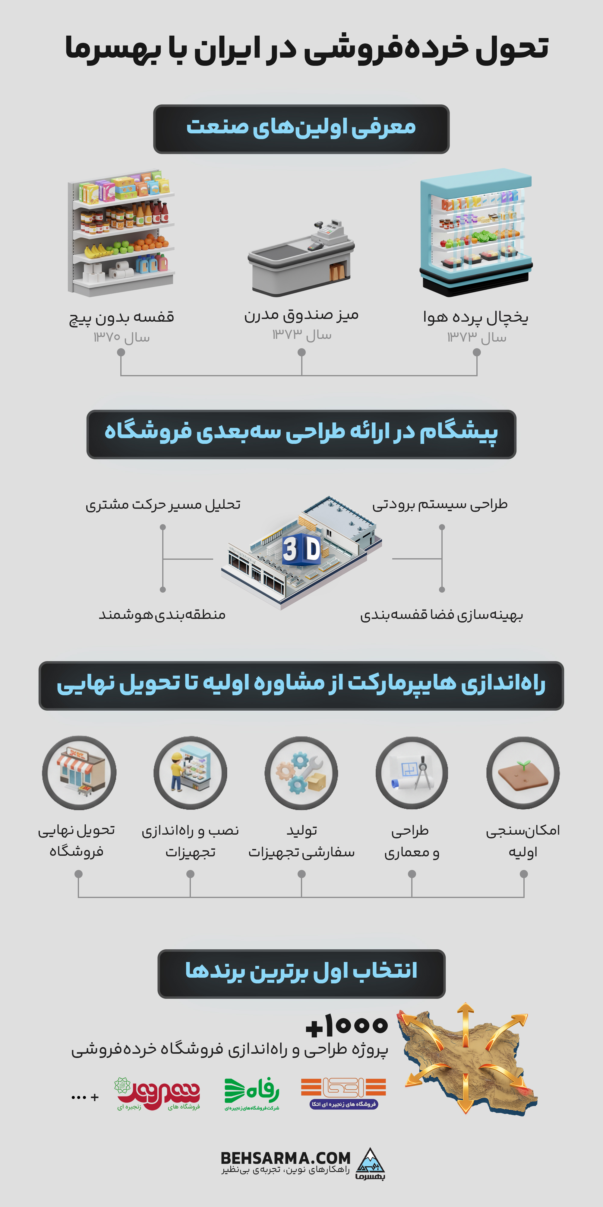 طراحی برای فضاهای کوچک و شهری: با رشد شهرنشینی، فروشگاههای کوچکتر اما کارآمد در مراکز شهرها (Convenience Stores) اهمیت بیشتری پیدا میکنند. بهسرما در حال طراحی و تولید تجهیزات ماژولار و کمجا برای پاسخگویی به نیازهای این بخش از بازار است.